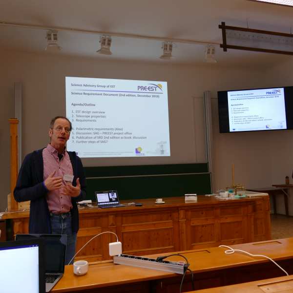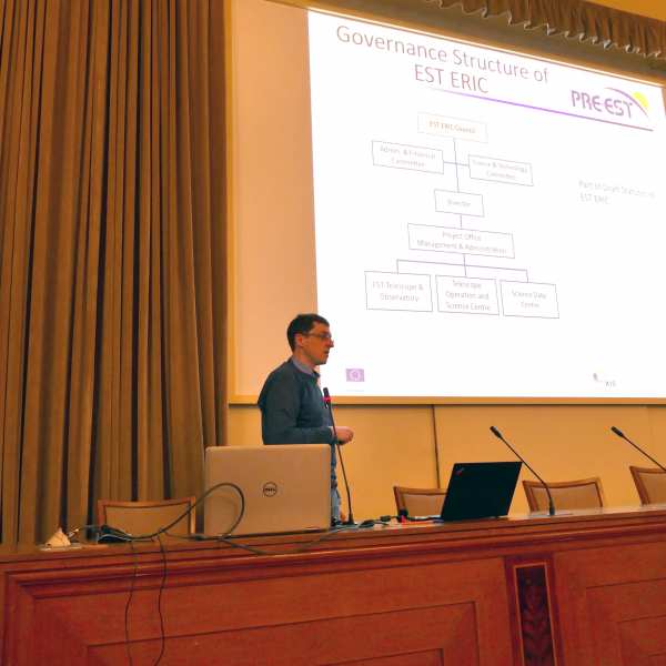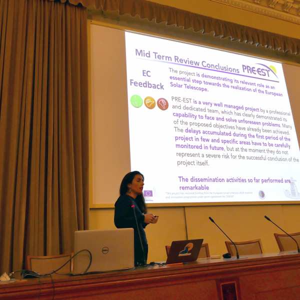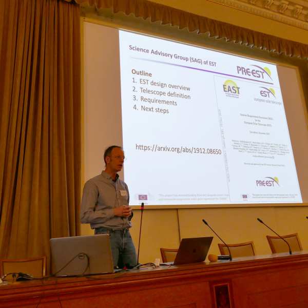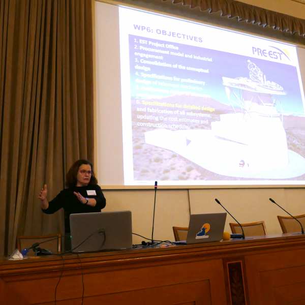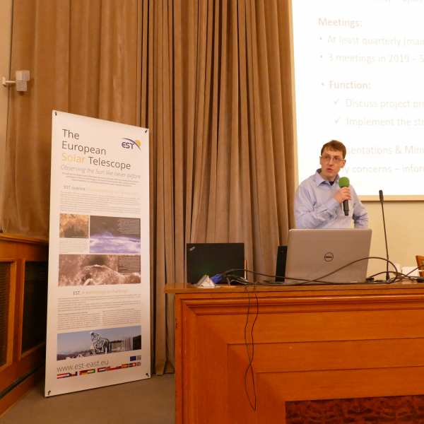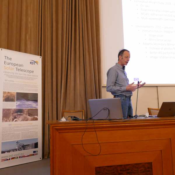 Members of the PRE-EST project shared the latest strategic and technical developments related to EST. This project, funded by the EU H2020 programme to develop a detailed plan for the implementation of EST, has worked intensively during the last year to consolidate the EST design, including the adoption of an 800-mm adaptive secondary mirror to ensure that EST is equipped with the most advanced technology. All works have a clear aim in sight: having a detailed Construction Plan by 2022.