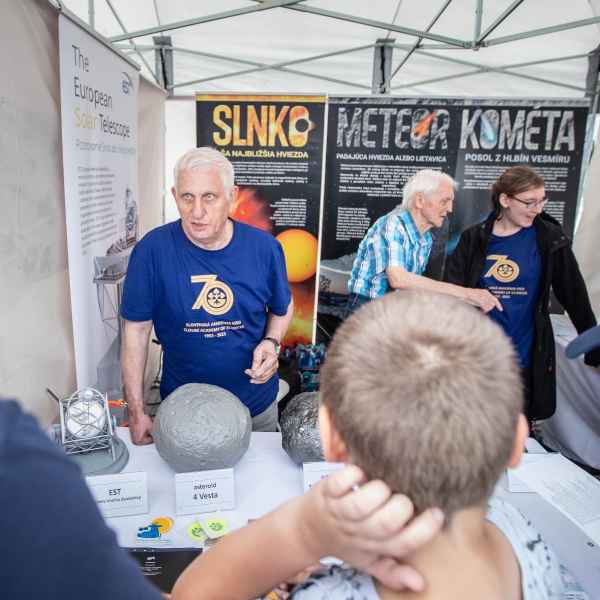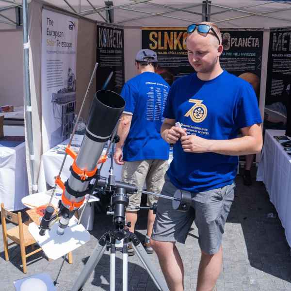 On the square in front of Eurovea in Bratislava, there were more than 50 stands with over 200 scientists, each representing scientific and research institutions from all over Slovakia. Material from the European Solar Telescope, including a model of EST produced with a 3D printer, was showcased in the stand of the Astronomical Institute of the SAS during the weekend.