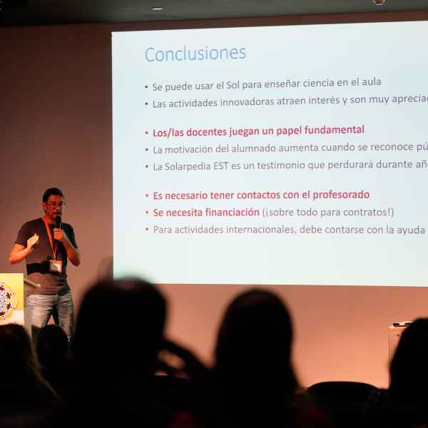 During the congress, whose motto this year was "Unity makes science," over 400 science communicators from different parts of Spain discussed the challenges of social science through a program featuring more than 200 conferences. Luis Bellot (IAA-CSIC) delivered a presentation discussing "The Sun at a Glance," the international infographic competition for secondary schools that took place within the EST project.