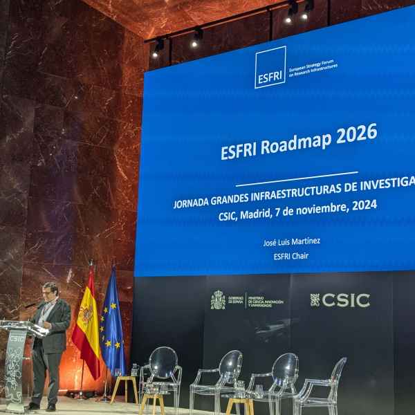 This event took place at CSIC headquarters in Madrid, on November 7, 2024. The aim of the sessions was to highlight Spain's participation in both national Singular Scientific and Technical Infrastructures and European ESFRI projects, as well as to present the CSIC’s strategy in this area, while offering a space for networking among interested parties. Speakers included José Luis Martínez (ESFRI chair), Ana Aricha (deputy director for Consortia, Organisations and International Research Infrastructures of the Spanish Ministry of Science, Innovation, and Universities), Ángela Fernández (deputy director for Large Scientific and Technical Infrastructures of the Spanish Ministry of Science, Innovation, and Universities), and Isabel Díaz (CSIC deputy vice-president for Internationalization and Cooperation).