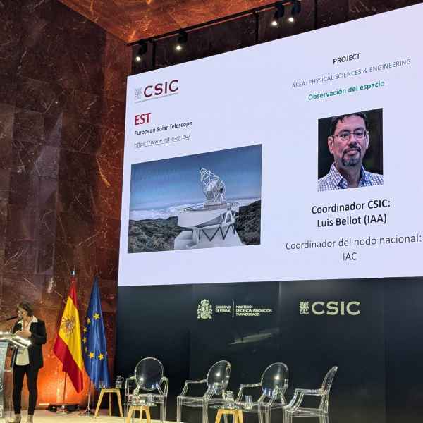 The European Solar Telescope (EST) played a prominent role during the event, and was presented as one of the major international scientific infrastructures in which Spain has a strategic involvement. Throughout the event, its significance within solar astrophysics was emphasised, alongside its inclusion on the ESFRI Roadmap, underlining its contribution to Spain’s scientific and technological leadership in international projects.