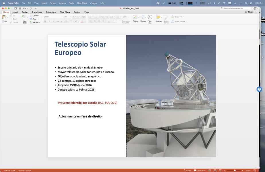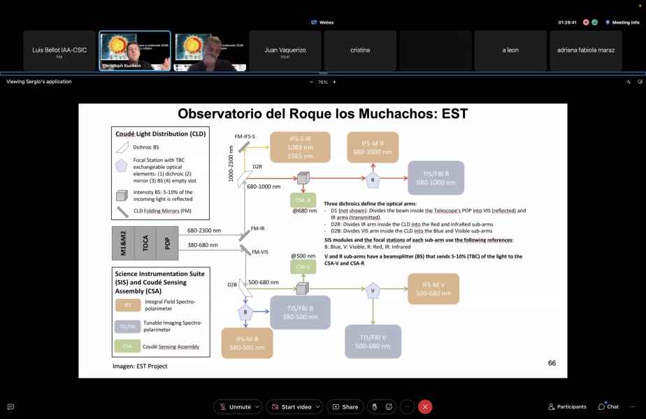 Luis Bellot Rubio (IAA-CSIC), Sergio Javier González Manrique (ULL) and Christoph Kuckein (IAC) lectured in this course, describing past, present and future solar telescopes. They paid special attention to the European Solar Telescope, including its technical and scientific objectivess. In addition, the structure, optics and adaptive optics of EST were also explained.